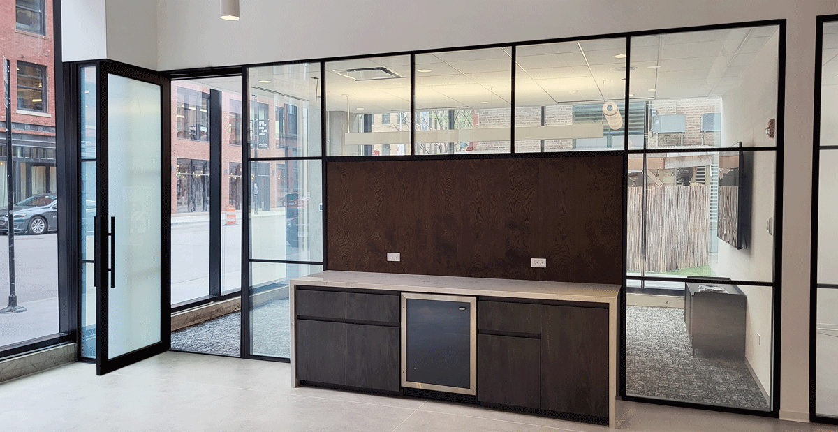 Installs directly onto existing glass without replacement, enhancing architecture with smart privacy technology and modern aesthetics.